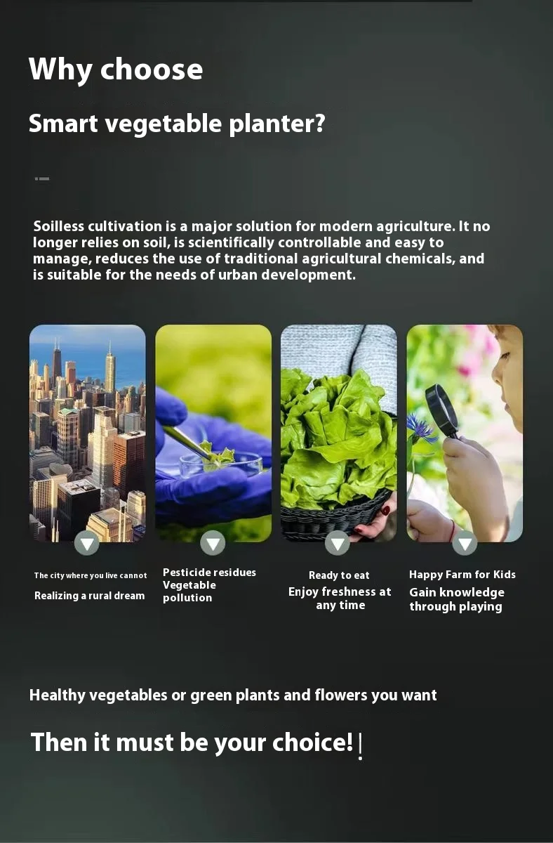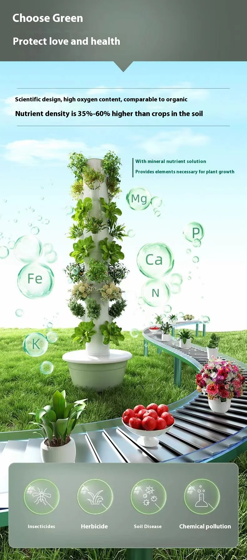 The intelligent system ensures optimal growth conditions for your plants, promoting healthy and abundant harvests. With this vertical tower, you can maximize space utilization while growing a variety of vegetables. Enjoy fresh produce right from your indoor garden using this cutting-edge planting column.